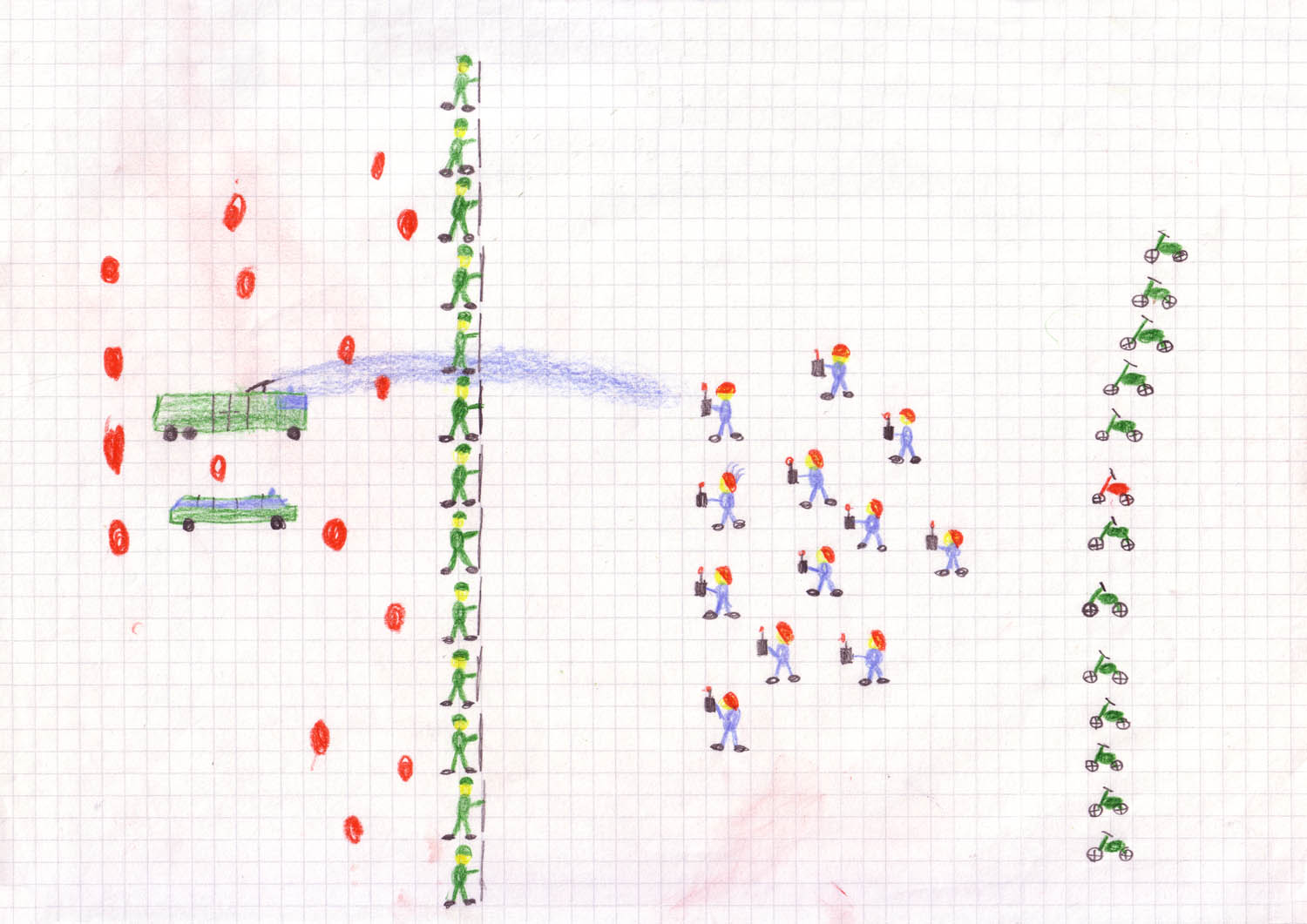 For the beginning I did ask some children whether they could draw me some images that depict war. None of these children has ever encountered war – and so do most of their parents – and so does most of our society. Nevertheless, war seems to be an essential part of our understanding of history and nation building.