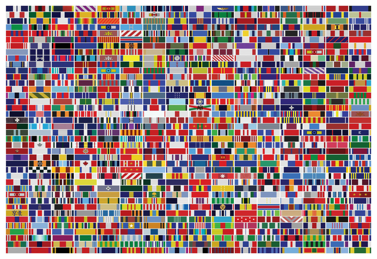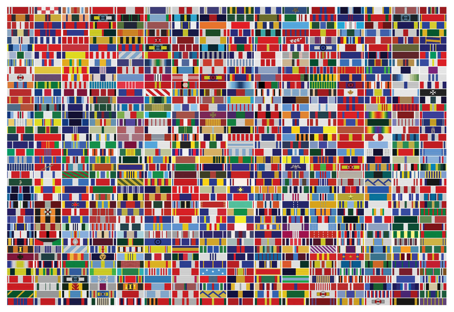 Military and civilian medals and decorations are very often accompanied by small color coded ribbons. These ribbons, known from the jackets of soldiers and generals, are intended to make valorous acts visible. But in fact, the whole thing becomes extremely abstract.
