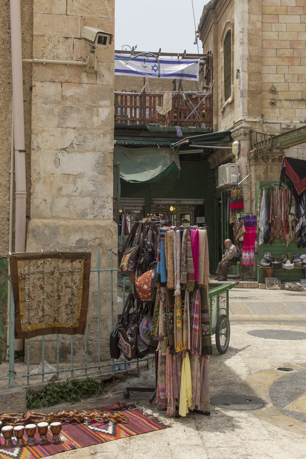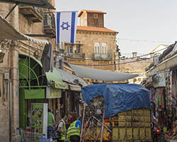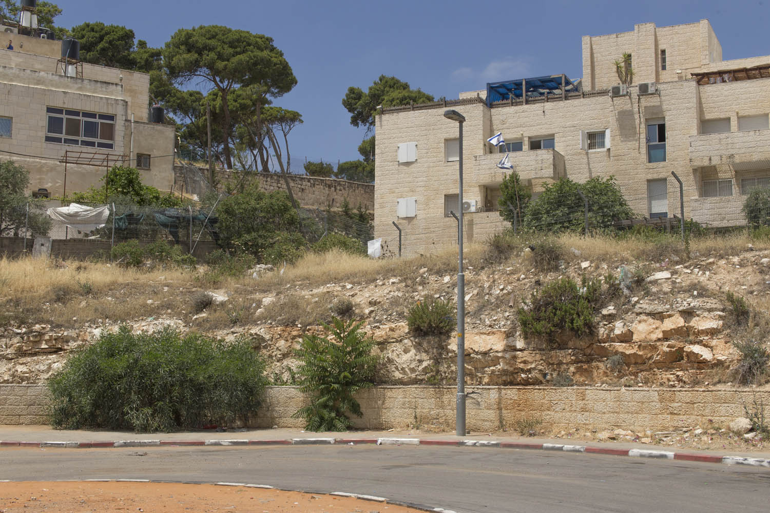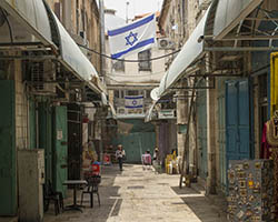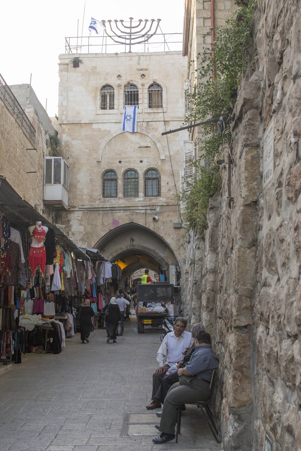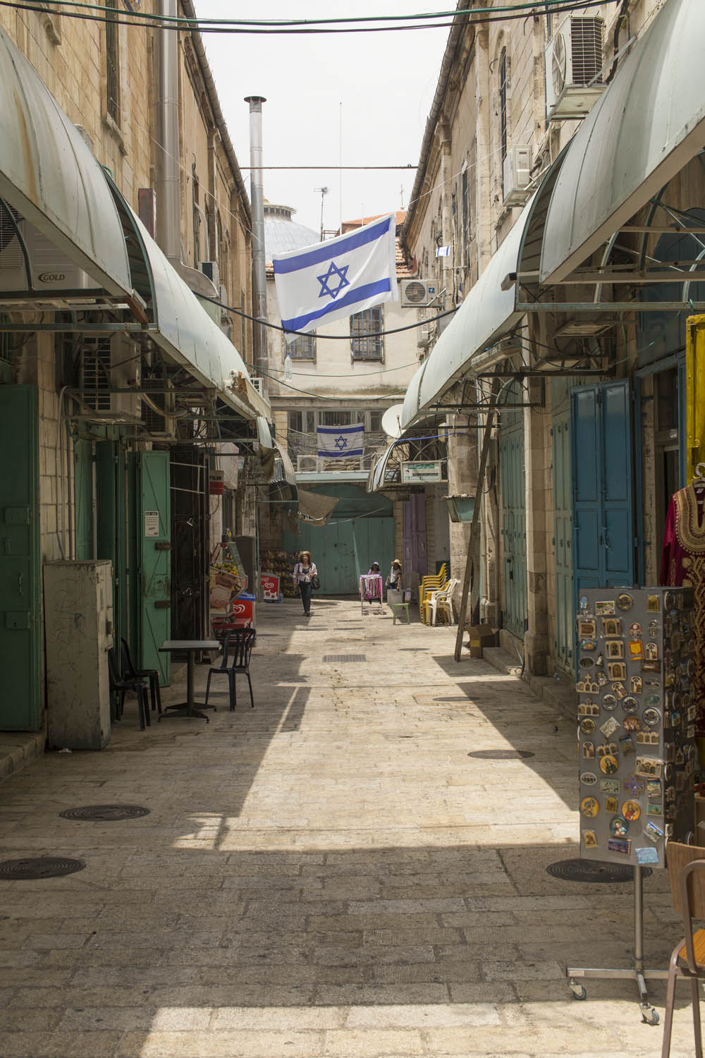 In an attempt to torpedo any peace process that divides Jerusalem according to a two state solution, Jewish settlers move into houses in Muslim or Christian neighborhoods in East Jerusalem. Sometimes these houses are bought through front men, sometimes they are acquired with the help of the Israeli court system. Many of these houses or apartments appear fortress-like, with a whole array of surveillance cameras and secured by heavily armed private guards. It is not in the interest of these inhabitants to have any kind of relation to their neighbors. So even though these houses and apartments appear quite innocent with their cute little flags and can easily been overlooked by the thousands of tourists in Jerusalem, they are an outgrowth of this ongoing and brutal conflict between Palestinians and Israelis.