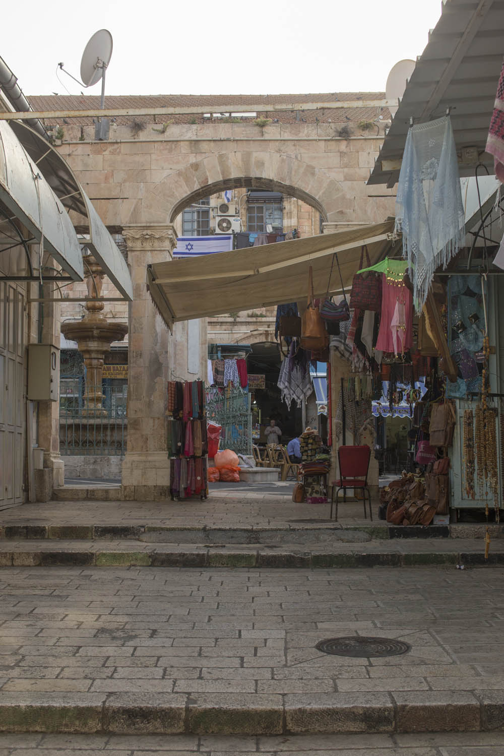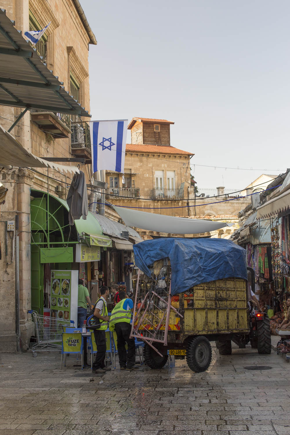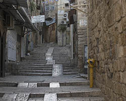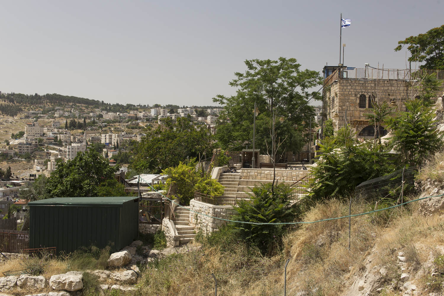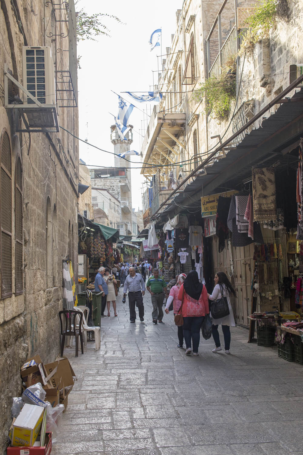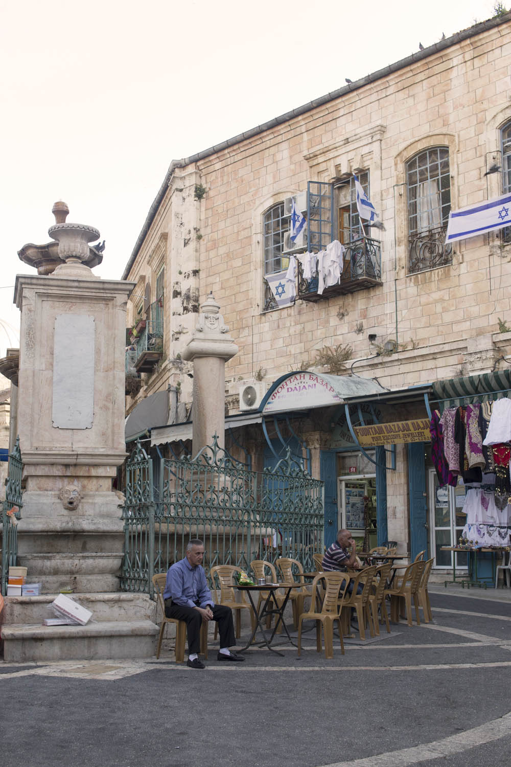 In an attempt to torpedo any peace process that divides Jerusalem according to a two state solution, Jewish settlers move into houses in Muslim or Christian neighborhoods in East Jerusalem. Sometimes these houses are bought through front men, sometimes they are acquired with the help of the Israeli court system. Many of these houses or apartments appear fortress-like, with a whole array of surveillance cameras and secured by heavily armed private guards. It is not in the interest of these inhabitants to have any kind of relation to their neighbors. So even though these houses and apartments appear quite innocent with their cute little flags and can easily been overlooked by the thousands of tourists in Jerusalem, they are an outgrowth of this ongoing and brutal conflict between Palestinians and Israelis.