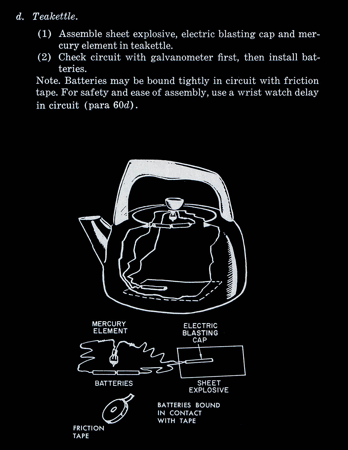The basic idea behind the construction of boobytraps of everyday objects is it to spread sustainable terror. If even a teakettle might be a bomb there is almost nothing that remains trustworthy. Everything might be a bomb and therefore, in the mind of those who face the threat, everything becomes a bomb.