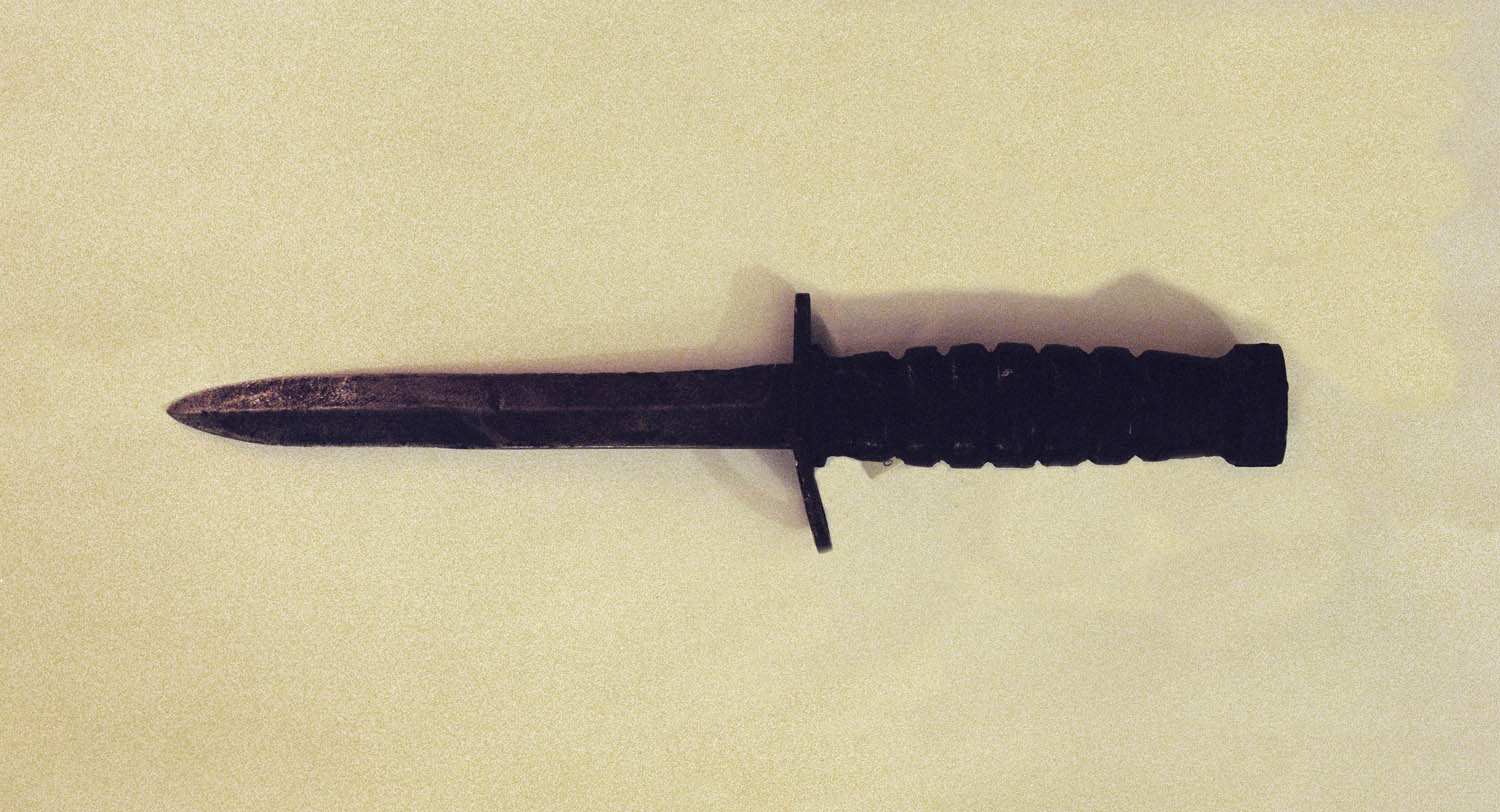 The images of this project all show weapons that have been used to murder people. It is interesting how much these images change as soon as the viewer recognizes that there is a story underneath the surface of the image. Without knowing this, these images show nothing more than knifes and guns.
