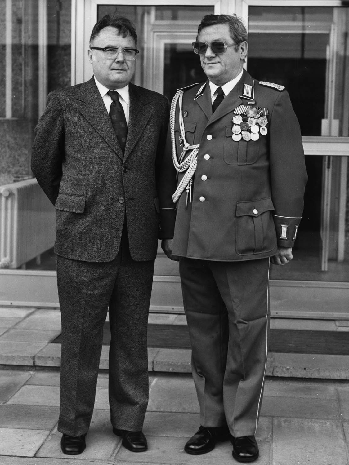 This is a group photograph of high-level functionaries taken in front of the headquarters of the Ministry for State Security in Berlin. Such pictures are a routine part of daily life in any profession, but in this case the pictures were archived and classified confidential.