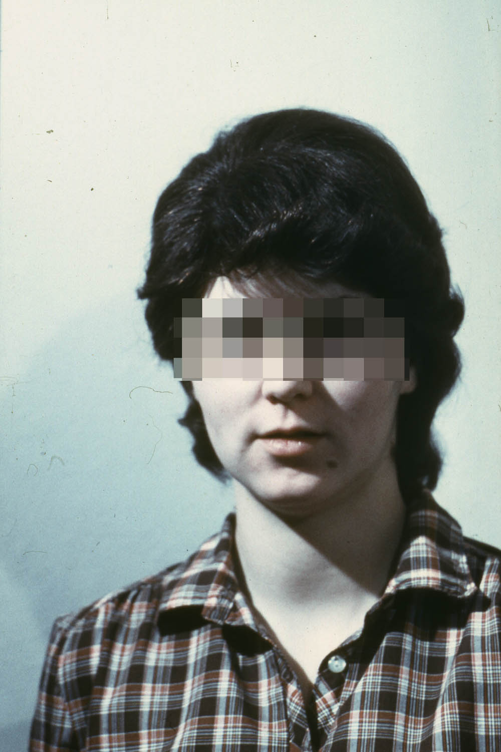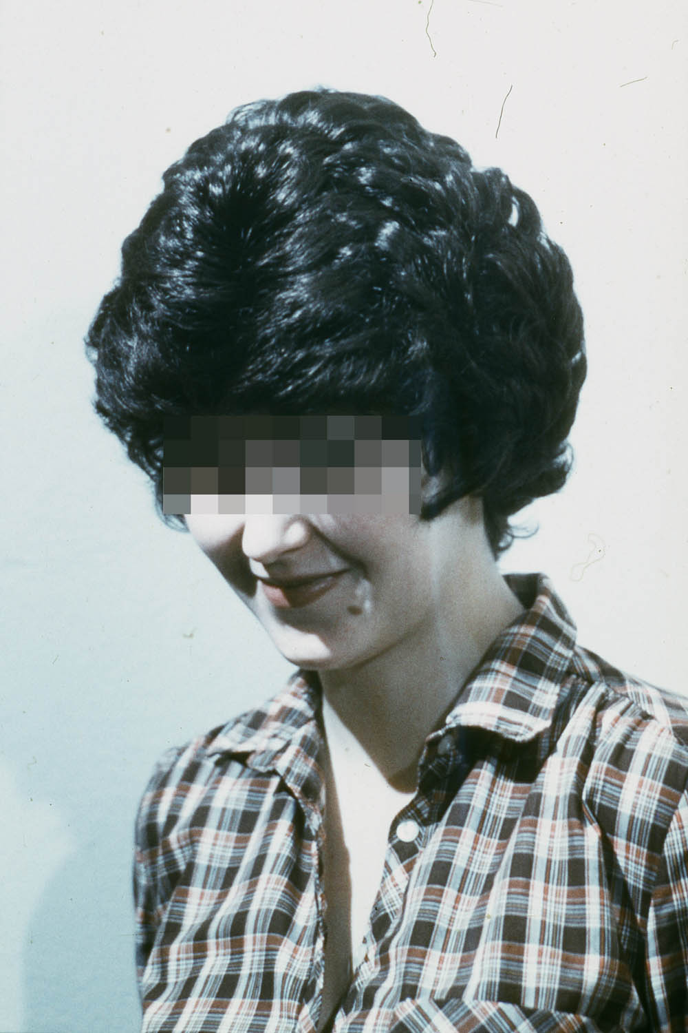 Various individual aspects of donning disguises were also treated in seminars and documented in photographs—here for example the use of different types of wigs. Based on the available documents, it is often impossible to know for sure whether a specific individual was in fact an agent of the Ministry for State Security. In such cases the images were anonymized by the Federal Commissioner for the Stasi Archives (BStU).
