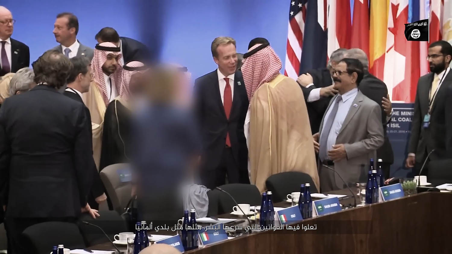 Especially when it comes to images from the political stage, I find it extremely tragic how easy it is for these groups to have women disappear from these images. International politics and the politics of the Arab World is still dominated by men. Very few women participate in these meetings who have to be removed by ISIS and Co afterwards. This might be a reason why Germany seems to be somewhat underrepresented in this form of propaganda. Angela Merkel is being called a bitch quite frequently, but her face cannot be shown.