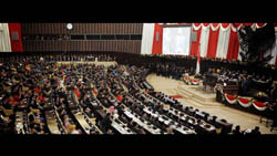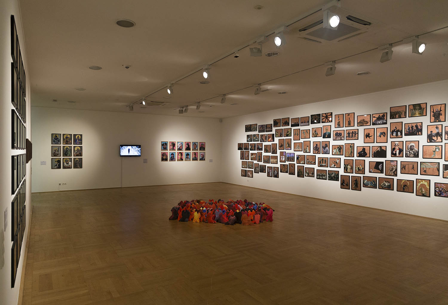 Quite symptomatic is the huge picture in the center of the wall. Here a huge number of men is driven to their mass shooting. Most of their clothing has been taken from them – maybe for economic reasons -, so they show their naked backs. This is then censored for the video, while the execution itself is shown in every bloody detail.